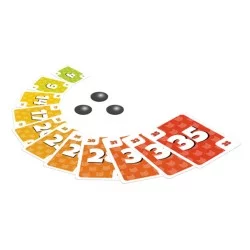 - Le jeu se termine lorsque toutes les cartes ont été révélées et jouées. Les cartes orthogonalement adjacentes portant le même numéro s’annulent et sont retirées du jeu. Le joueur avec le score le plus bas remporte la partie .