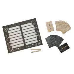 1 livret de règles, 200 cartes Pensée recto-verso, 50 cartes Thème de nuit, 5 tuiles Fiole, 1 plateau de score, 1 pion Fiole, 6 jetons Outil, 1 tuile Pensée vierge effaçable, 2 tuiles Décompte recto-verso, 5 tablettes de création effaçables , 5 feutres, 5 chiffonnettes |
