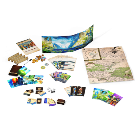 1 écran / 1 règles / 2 livret / 9 scénarios / 70 petites cartes / 50 grandes cartes / 4 dés 12 / 1 dé 8 / 2 dés 6 / 1 poster A3 / 4 enveloppes / 1 marqueur / des jetons |