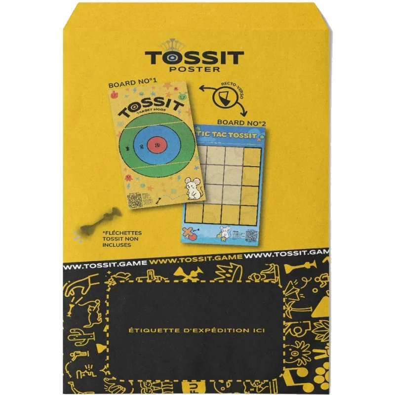 1 Poster laminé TOSSIT recto-verso, 10 bandes adhésives 3M repositionnables, QR code avec règles complètes & variantes fun. |