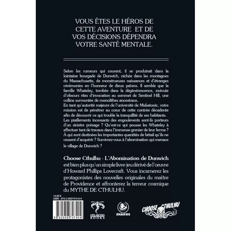 Les piaillements incessants des engoulevents sont-ils porteurs d’un sinistre présage ? Qu’est-ce qui pousse les Whateley à effectuer tant de travaux dans l’immense grenier de leur ferme ? À qui sont destinées les importantes quantités de bétail qu’ils ne cessent d’acquérir ? Survivrez-vous à l’abomination qui menace le village de Dunwich ?