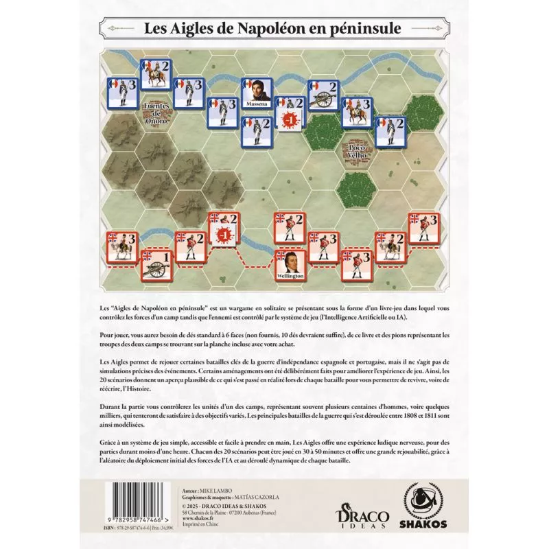 Les Aigles de Napoléon en péninsule vous propose 20 scénarios de batailles à jouer en solitaire, où vous prendrez le commandant les troupes des deux factions, coalisés d’un côté (Espagnols, Portugais et Britanniques), impériaux de l’autre (Français). Chaque scénario se joue en moins d’une heure.