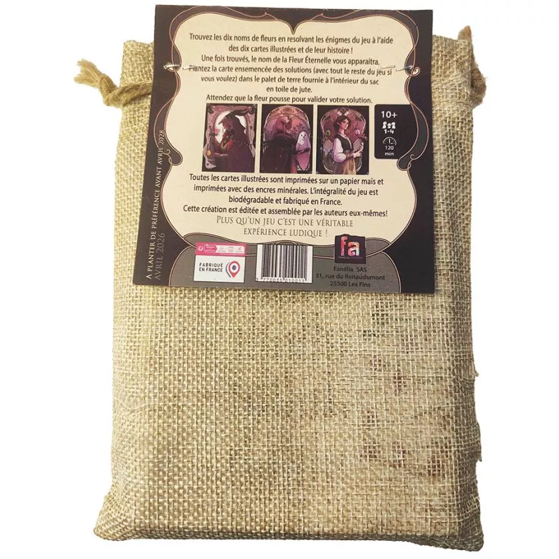 Plongez dans l’univers du Secret de la Fleur Éternelle et tentez de résoudre ses mystères. Enquêtez, réfléchissez, assemblez les dix cartes du jeu jusqu’à ce que la solution finale vous apparaisse. Une fois trouvée, plantez la carte ensemencée (?avec tout le reste du jeu si vous le souhaitez?) et découvrez si la bonne plante finit par fleurir. Les cartes règles et le site internet vous aideront dans l’aventure si besoin, et vous indiqueront la marche à suivre pour faire pousser votre solution.