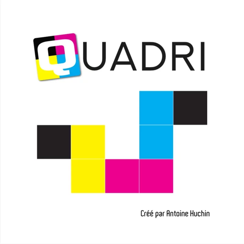 Quadri, créé par Antoine Huchin et édité par Creative and Cool, est un jeu de placement de cartes où chaque carte comporte 4 couleurs. Le but est de réaliser des objectifs de forme et de couleur pour marquer un maximum de points. Le jeu propose 3 modes distincts : compétitif, collaboratif et ball trap, chacun offrant une expérience différente. Accessible dès 8 ans, il se joue de 1 à 6 joueurs pour des parties rapides de 15 à 30 minutes. Quadri séduit par ses règles expliquées en quelques secondes, mais qui ouvrent la voie à des combinaisons tactiques et parfois casse-tête. Idéal pour l’apéro ou les après-midis en famille